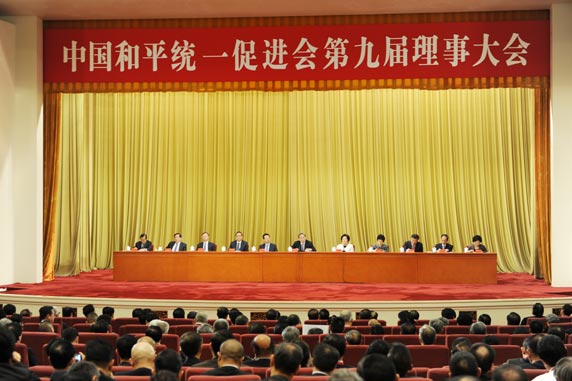 9月21日,中国和平统一促进会第九届理事大会在京召开。中共中央政治局常委、全国政协主席俞正声当选中国和平统一促进会会长。我会会长关百新参加了本次理事大会。 中共中央政治局委员、中央统战部部长孙春兰主持会议。大会审议通过了中国和平统一促进会第八届理事会工作报告,选举产生了第九届理事会领导班子、秘书长和常务理事共97人。孙春兰当选为执行副会长,陈昌智、严隽琪、万鄂湘、张宝文、陈竺、韩启德、帕巴拉·格列朗杰、万钢、林文漪、齐续春、王钦敏当选为副会长,林智敏当选为秘书长。大会聘请周铁农、蒋树声、桑国卫、黄孟复、厉无畏为名誉副会长。