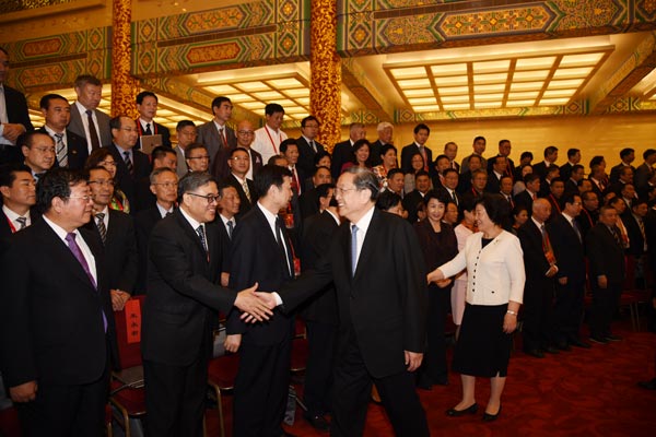 图为中国和平统一促进会会长俞正声和理事握手 同日,我商会关百新会长又以俄罗斯和统会常务副会长身份出席了中国和平统一促进会第十三次海外统促会会长会议。来自近80个国家的200余位海外统促会会长及有关人士与会。中央统战部副部长,中国和平统一促进会秘书长林智敏出席会议并讲话。