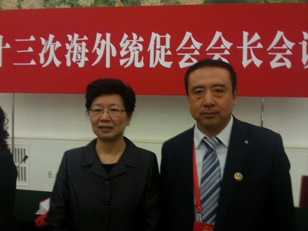 图为我商会会长关百新(右1)和中国统战部副部长、中国和平统一促进会秘书长林智敏(左1)合影