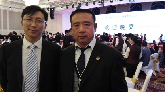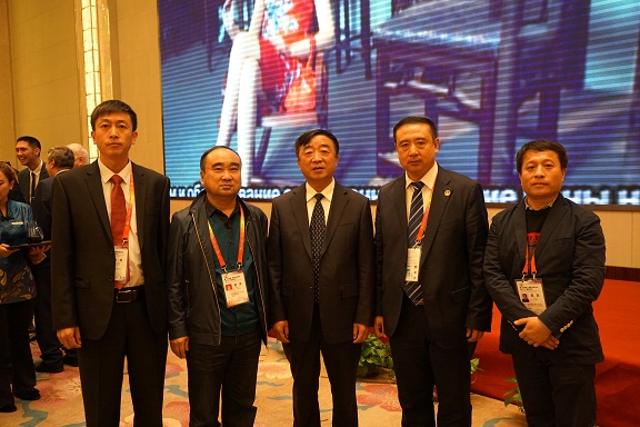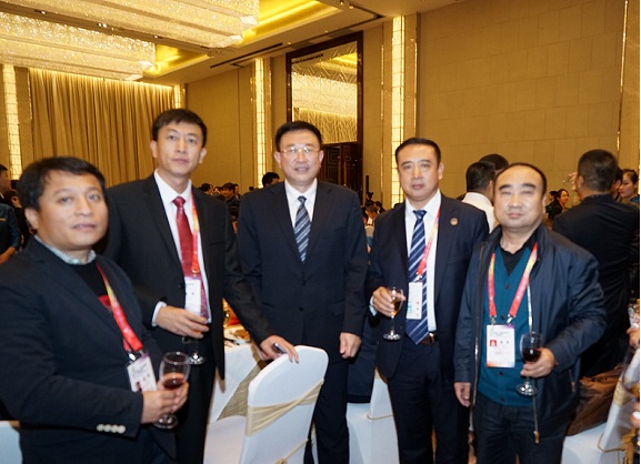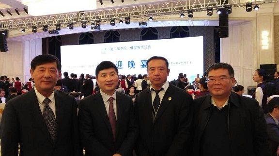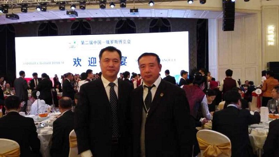 图为共青团黑龙江省委员会书记李豪岩(左1)和我商会会长关百新(左2)在第二届中国-俄罗斯博览会欢迎晚宴上合影
