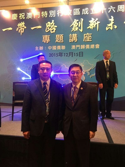 2015年12月15日至16日,由中国侨联与澳门归侨总会共同主办的“一带一路·创新未来”主题活动在澳门举行,中国侨联副主席、中国侨联青年委员会会长乔卫出席活动。我商会关百新会长参加了本次主题活动。
