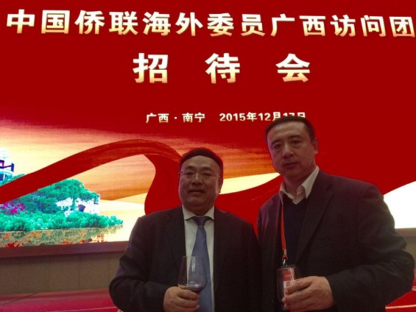 2015年12月17日, 80名中国侨联海外顾问、委员到广西参观考察,他们来自世界20多个国家和地区。活动中,广西官方在南宁举行欢迎仪式,热烈欢迎访问团一行。我商会关百新会长应邀出席了招待会。