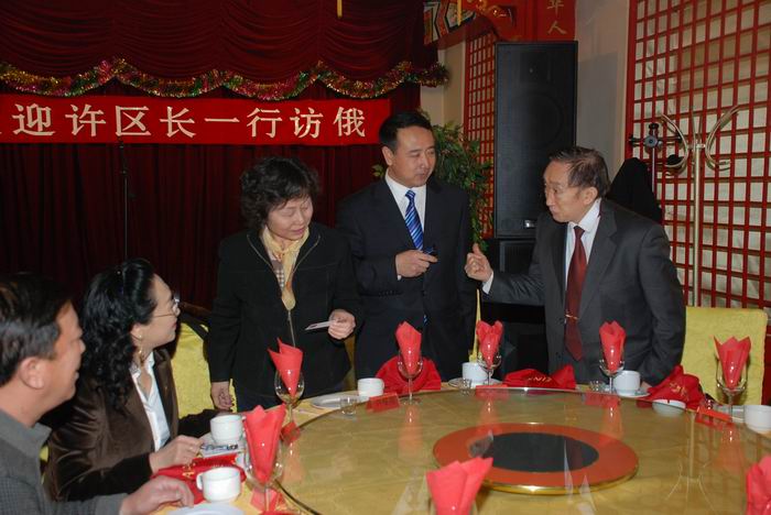 2009年2月9日是中国人民的传统节日元宵节。当天,以哈尔滨市平房区政府副区长许桂君为首的代表团一行五人访问欧洲后抵达莫斯科。中午,莫斯科北方商会关百新会长在新旭福满楼大酒店举行招待宴会,欢迎来自祖国的亲人,共度元宵佳节。 招待会由莫斯科中国北方华人商会驻国内总代表张舜主持,关百新会长致欢迎辞,刘延丽副会长致祝酒辞。席间,莫斯科华人华侨教授协会会长黄华斌、莫斯科温州商会会长汪建伟、以及北方商会的各位副会长、留学生代表畅叙友情,并讨论怎样度过金融危机、迎来新的发展机遇,宾主相互勉励、表达了海外华商与国内同胞的赤子之情,爱国之情。 代表团团长、哈尔滨市平房区政府副区长许桂君致答谢辞。她充分肯定莫斯科北方华人商会及所有旅俄侨胞的爱国思乡之举,表达了代表团全体成员在异国他乡欢度元宵佳节像家里一样温暖的亲身感受。