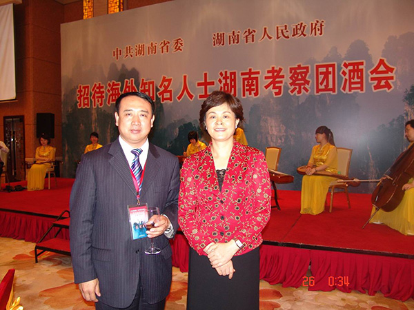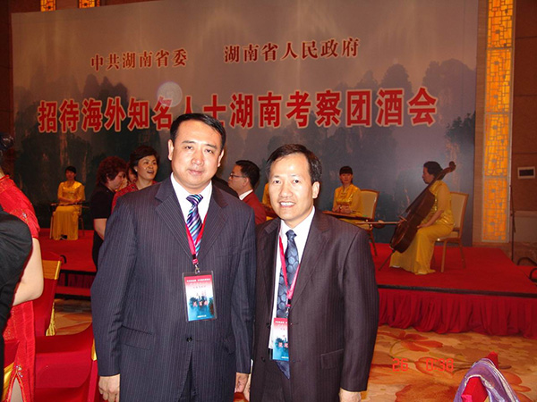 图为关百新会长与和湖南省省委书记周强合影 5月6日----10日中华海外联谊会海外理事考察团一行分别考察了湖南省长沙市国家级高新技术开发区岳麓书院。马王堆博物馆,三国时代东吴简牍博物馆。 7日参观了韶山毛泽东纪念馆,毛泽东故居,以及8日考察凤凰古城,天子山自然保护区等旅游景点,得到当地政府和湖南省委省政府的热情招待,并且相互勉励,怎样面对金融危机所带来的困难。湖南省委,省政府高度赞扬了海外华商在对祖国、对家乡的热爱。特别是在雪灾和汶川地震时体现了海外游子们对祖国赤子之情。中华海外联谊会的各位理事也分别发言。俄罗斯莫斯科北方华人商会会长关百新先生说:我们莫斯科北方华人商会非常感谢党和政府及祖国人民对我们这些海外华商的支持和厚爱,党和政府没有忘记我们生活在海外的游子,我们一定要不幸负党和政府以及祖国人民的重望,把工作做好,回报祖国和人民。