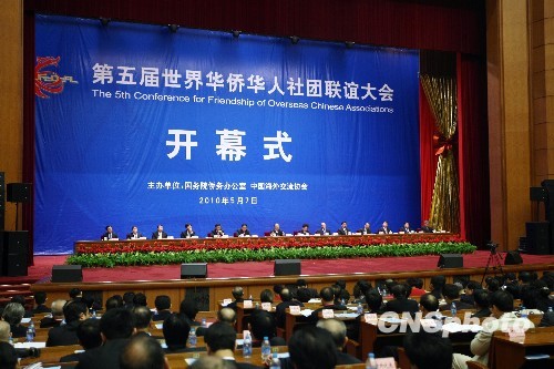 5月7日,由中国国务院侨办和中国海外交流协会共同主办的“第五届世界华侨华人社团联谊大会”在北京举行,来自世界五大洲近120个国家和地区有影响力和代表性的华侨华人社团负责人及国内相关部门负责人约600人与会。 国务委员戴秉国出席开幕式并致辞。国务院侨办主任李海峰作了题为《携手合作 为建设和谐侨社和谐中国和谐世界做出新贡献》的主题报告。