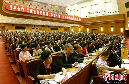 中共中央政治局常委、全国政协主席贾庆林接见了全体代表。俄罗斯莫斯科中国北方华人商会会长关百新也一同受到接见。 国务院侨办主任李海峰作了题为《携手合作 为建设和谐侨社和谐中国和谐世界做出新贡献》的主题报告。她指出,新疆、西藏自古以来就是中国不可分割的一部分。新疆、西藏各族人民是中华民族大家庭的重要成员,境外维吾尔族、藏族等少数民族侨胞是海外华侨华人社会的重要组成部分。