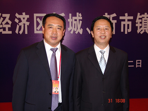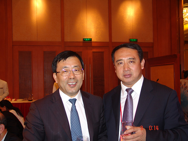 在本溪市的考察活动中,在欢迎宴会上,中共本溪市委副书记李景阳和关百新会长一起合影留念。 中共本溪市委副书记李景阳(右),关百新会长(左)。
