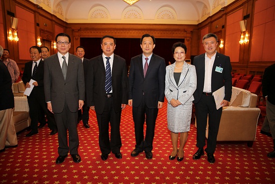 图为我会会长关百新和黑龙江省省长陆浩(左三)、省统战部部长赵敏(右二)合影